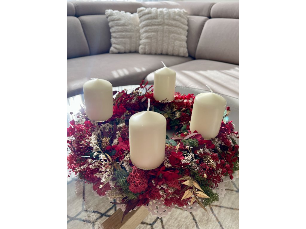 - veniec možno použiť so 4 sviečkami alebo v strede stola s jednou sviečkou v strede