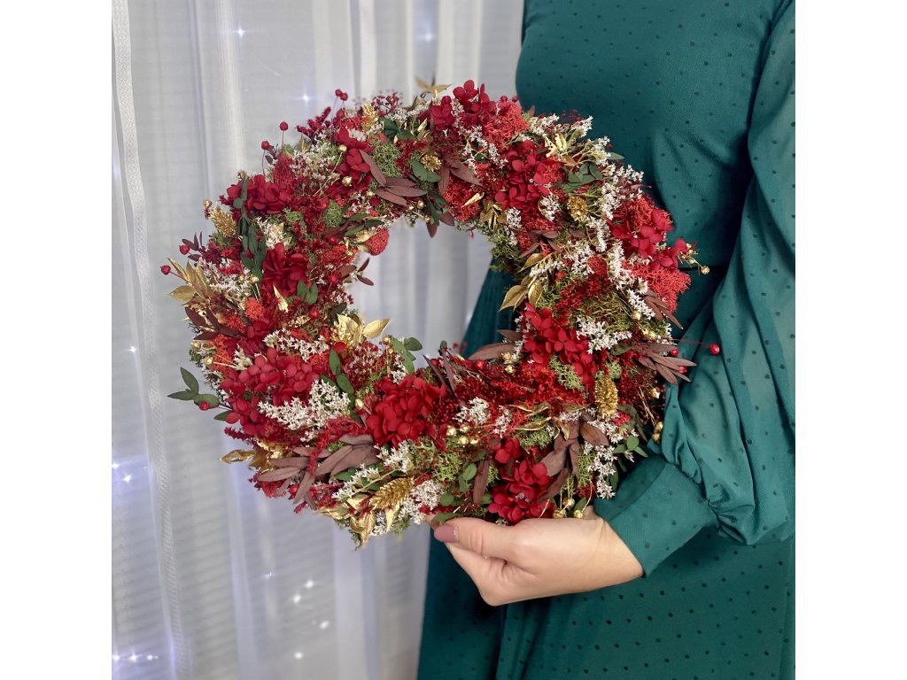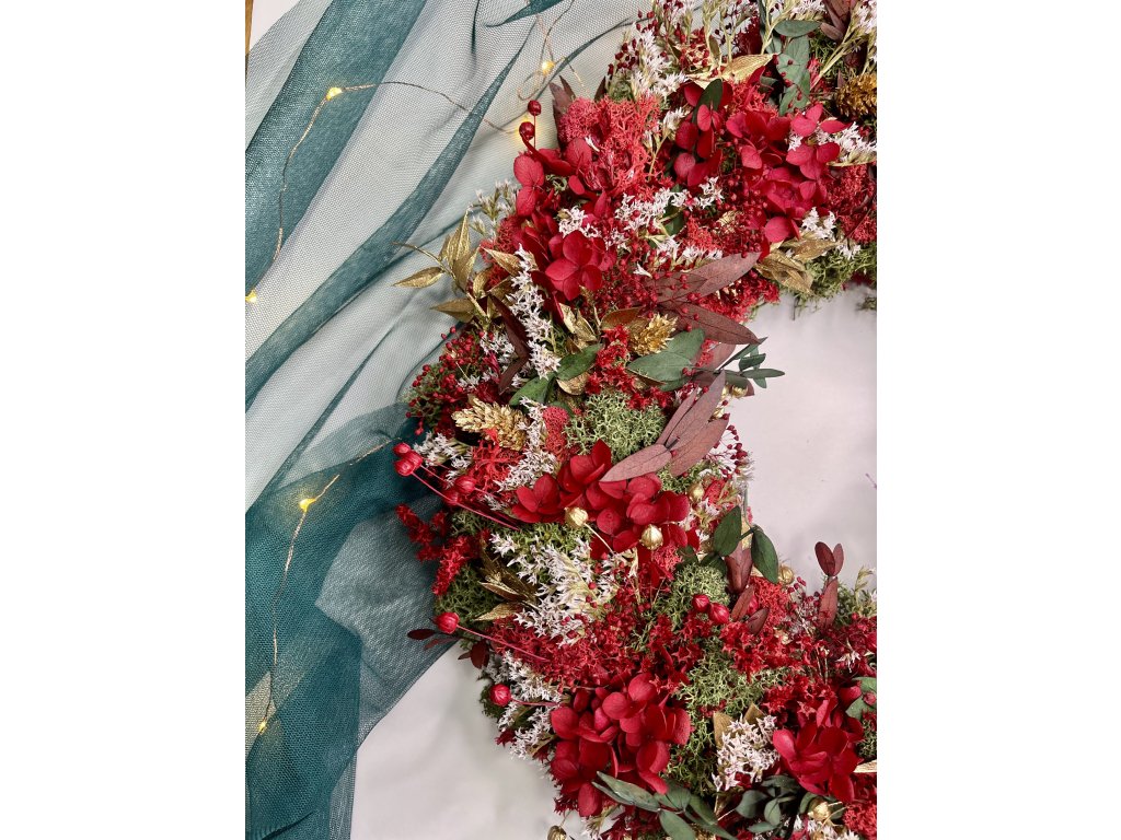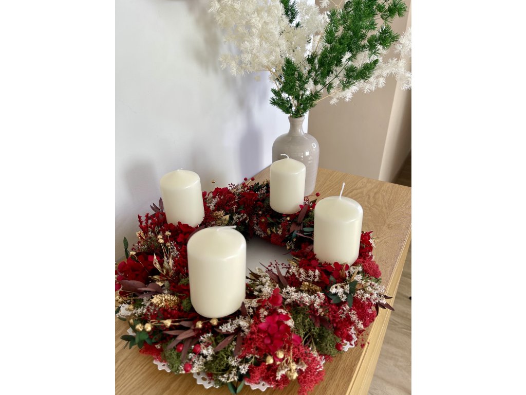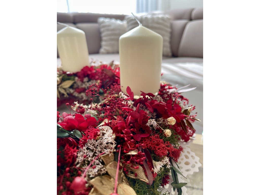 Tento ručne vyrábaný veniec vám prinesie radosť nielen počas adventu, ale aj počas Štedrého večera a celých zimných mesiacov. Veniec je tvorený z prírodného machu, sušených a stabilizovaných rastlín ako eukalyptus, gypsomilka a rôzne druhy trvácnych tráv. Vďaka tomu si zachová svoju krásu a farby po dlhý čas – bez potreby starostlivosti.