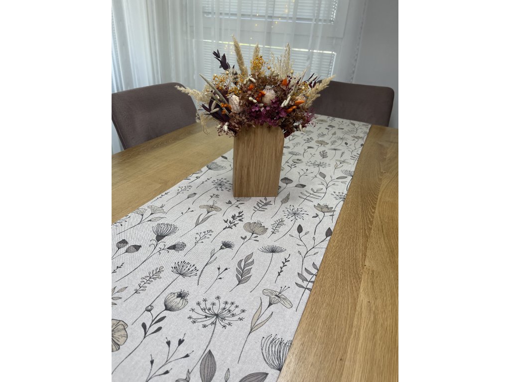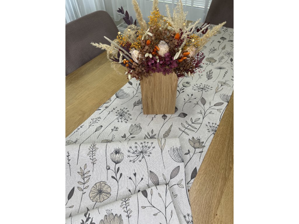 Behúň na stôl je vytvorený z dekoratívnej bavlny, ktorá zaujme potlačou jesenných kvetov, ktorý Vám umožne spomaliť a vychutnať si domácu pohodu pri šálke obľúbeného čaju.