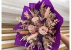Ručne vypichovaná kytička zo sušených, či stabilizovaných kvetín v keramickom obale.