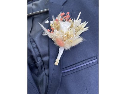 Pierko pre ženícha vyrobené z prírodnych stabilizovaných a sušených kvetín.